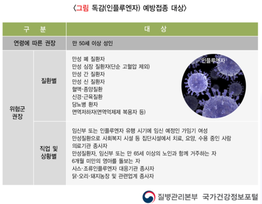 매년 접종을 받아야 하며, 특히 10월~12월에 접종하는 것이 가장 효과적입니다.