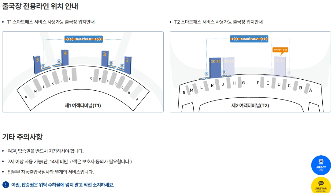 - (출국장) 인천공항 스마트패스는 이용항공사 무관하게 스마트패스 등록여객 모두 사용 가능합니다.